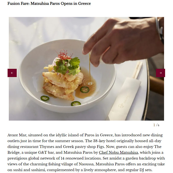 Published the Interview with Nobu Matsuhisa on the Matsuhisa restaurant at Avant Mar